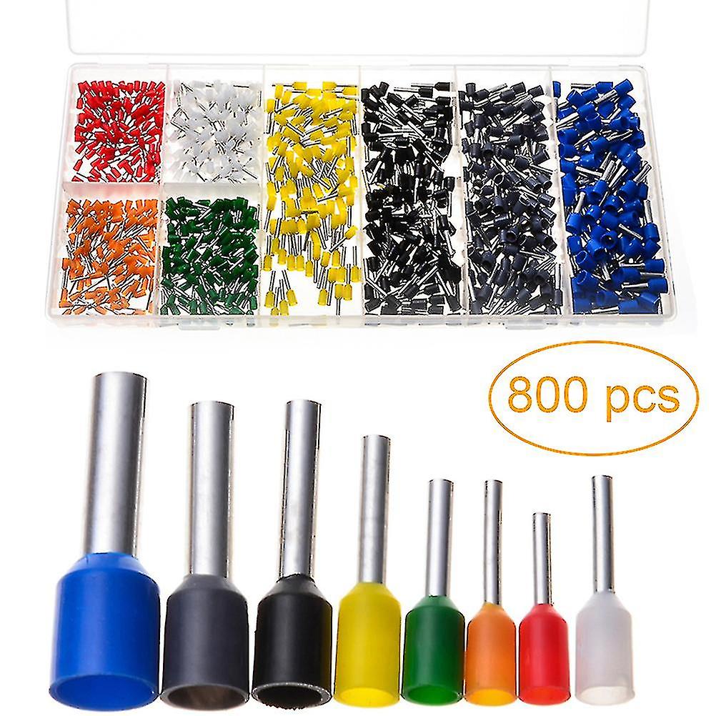 800pcs Assortment Ferrule Wire Copper Crimp Connector Insulated Cord Pin End Terminal Awg 22-10 Kit