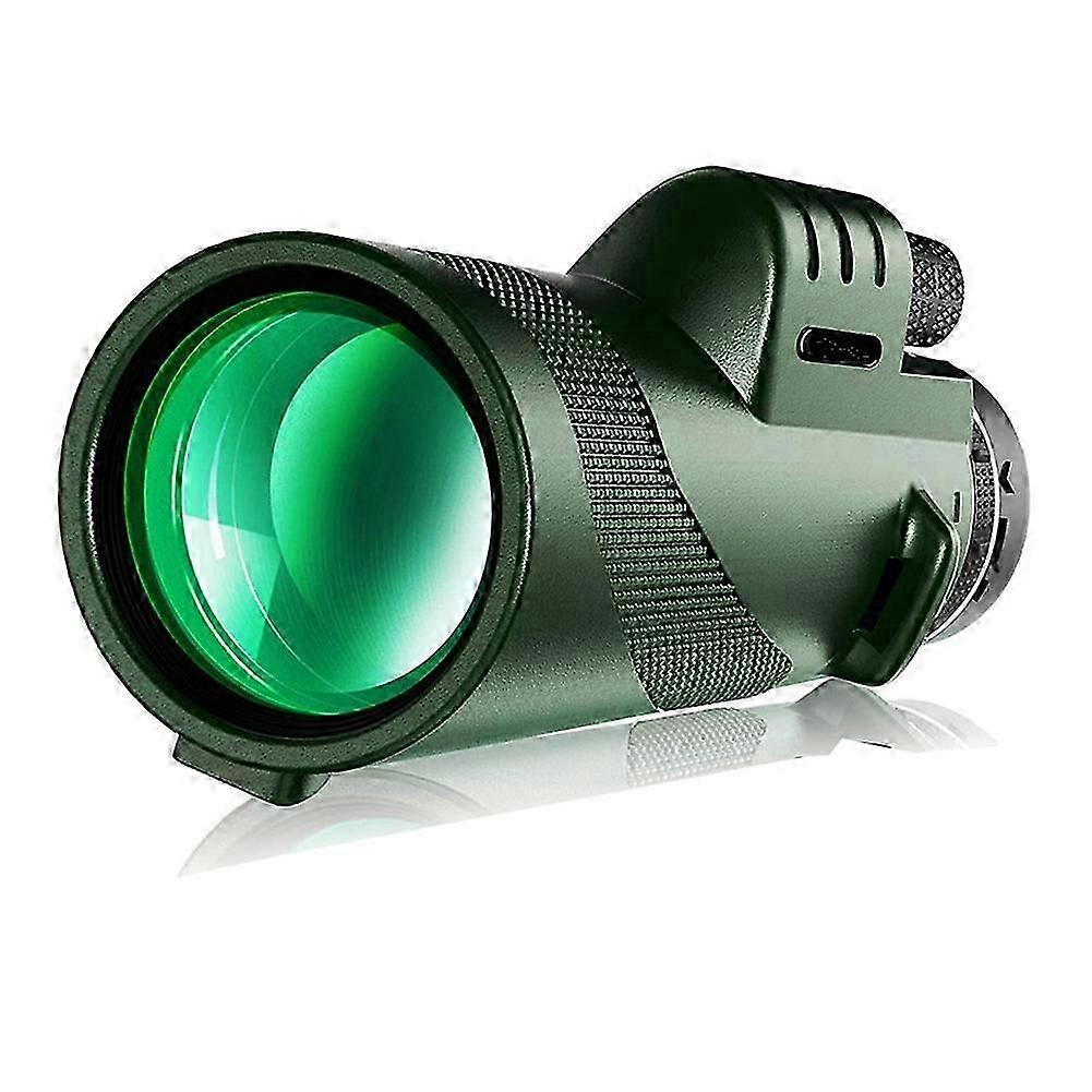 80x100 high magnification monocular provides, providing you with clear, bright images and different fields of view. High Stability Tripod and Phone Adapter Upgrade the sturdy tripod to you get clearer, brighter, shake-free images. Let you take a photo with one click and focus on the scenery. High Standard Monoculars The 80x100 monoculars are made of high quality materials. Large -4 prisms and fully multi-coated lenses enhance the key functions of the sight. High light mittance up to 99.9%. Light reflection and minimal distortion, multi-coated optics excellent light mission and brightness. Low-light night vision built-in design helps you see things clearly in low light, making it the for adults. Compact Monocular This compact monocular is easy to use with one hand. The striped rubber armor adds friction to keep it from slipping out of your hands. there is a tripod connector on the bottom of the monocular for stable viewing when attached to a monocular tripod Wide Compatibility 1. Glasses wearers are not limited. The monocular design allows the wearer to get closer to the eyepiece without compromising the viewing experience for a more comfortable feel. 2. Equipped with a mobile phone holder, suitable for many types of smart phones on the market. 3. Both adults and children can use it. Color: green material: plastic Package Contents: 1 x Monocular 1 x Phone Holder 1 x Tripod 1 x Glasses cleaning cloth Only the above package content, other products are not included. Note: Light reflection and different displays may cause the color of the item in the picture a little different from the real thing. The measurement allowed error is +/- 1-3cm.
