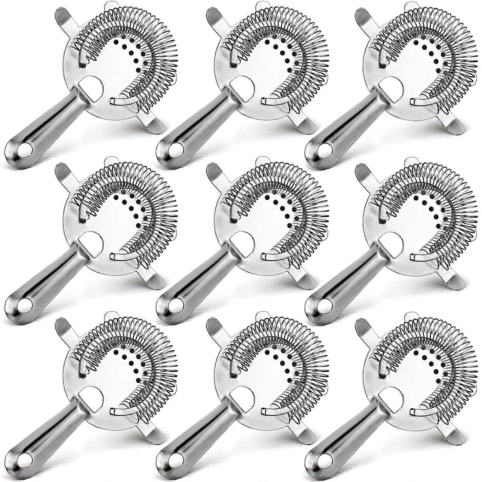 9 Pack Stainless Steel Cocktail Strainer Set for Bartenders, 6 Inch, Durable, Heavy-Duty, Bar Tool Accessories