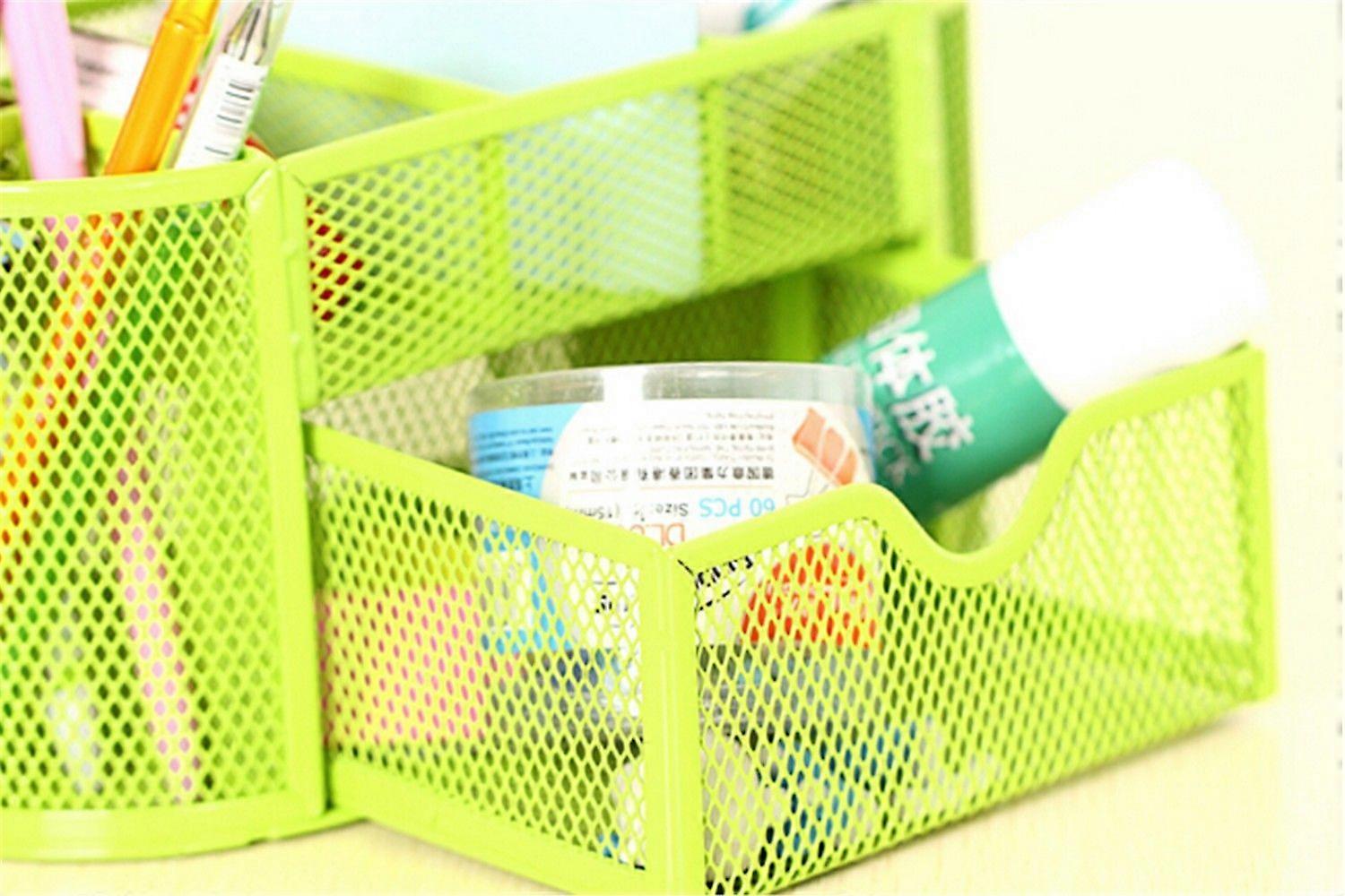Features: 9 Slots include: 4 pen holders,4 slots and 1 drawer Metal frame Bright colour Multi-function No assembly required Specification: Material: Metal Dimension (LxWxH): 22 x 11 x 10cm Package Dimensions: 22.5 x 11.5 x 11cm Volume: 0.003 Weight: 387g Colour: Blue/Green/Black/Rose Red Package Contents: 1 x 9 Slots Desk Organizer