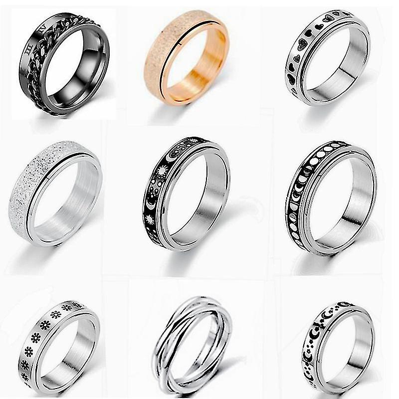 9pcs Rotating Ring Titanium Steel Couple Ring Decompression Ring Rotating Combination Set
