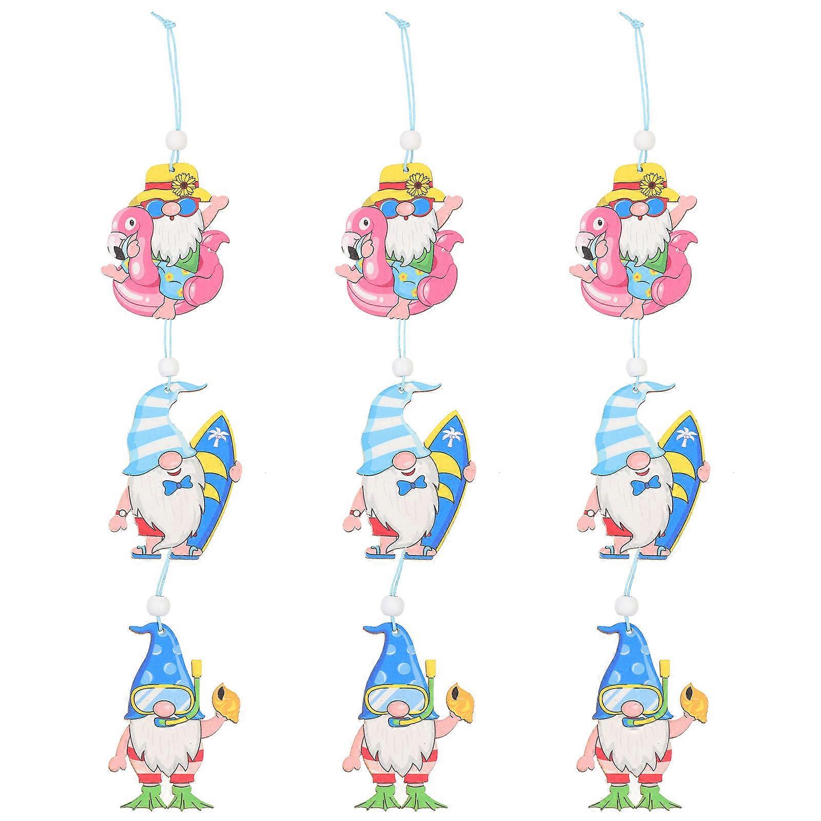 9Pcs Wooden Gnome Ornaments Decoration For Luau Party Summer Theme Occasion Gnome Shape Assorted Color