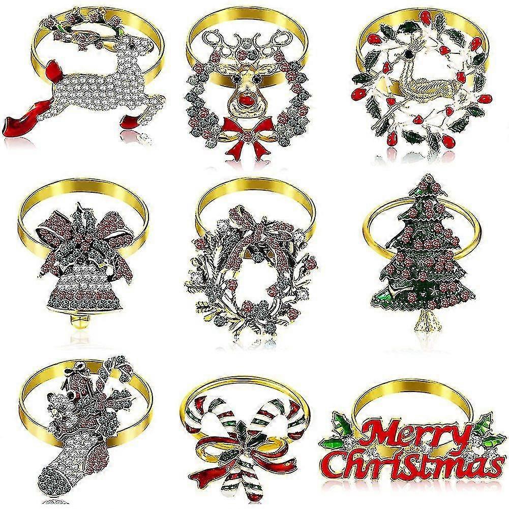 9 Pieces Christmas Napkin Rings Set Metal Christmas Napkin Holder Napkin Ring Decor