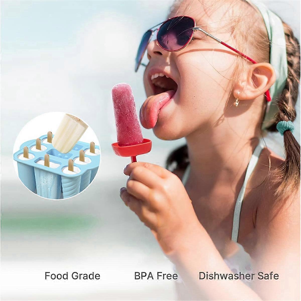 9 Hole Silicone Popsicle Molds Easy-Release Homemade Popsicle Ice Maker with 50PCS Popsicle Sticks B