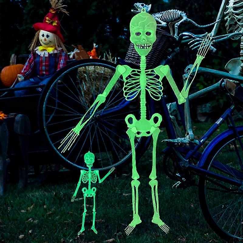 90/32cm Glowing in Dark Skeleton Halloween Decorations for Home Hanging Luminous Skull Outdoor Halloween Decor