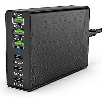 96w 6-port Desktop Usb Charging Stat With 3 Usb-c Ports And Qc3.0 Ports, 20w Fast Charr Eu Plu