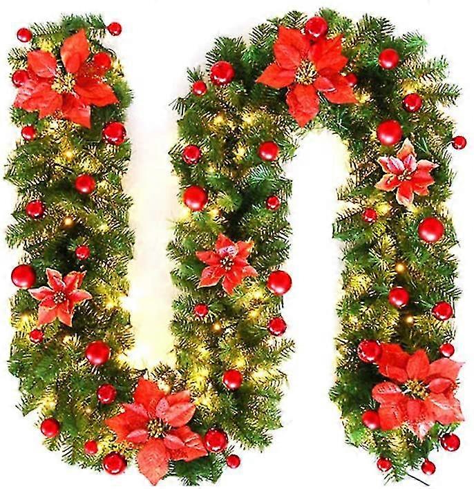 9FT Pre Lit Christmas Garland with Lights Door Wreath Xmas Fireplace Decorations