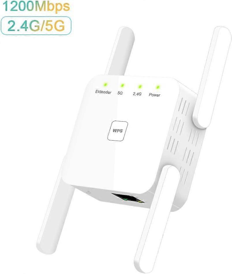 AC1200 WiFi Repeater 867Mbps/5GHz 300Mbps/2.4GHz Dual Band with WPS, LAN Port, EU Plug, Thermal Design, Compatible with All WLAN Devices White