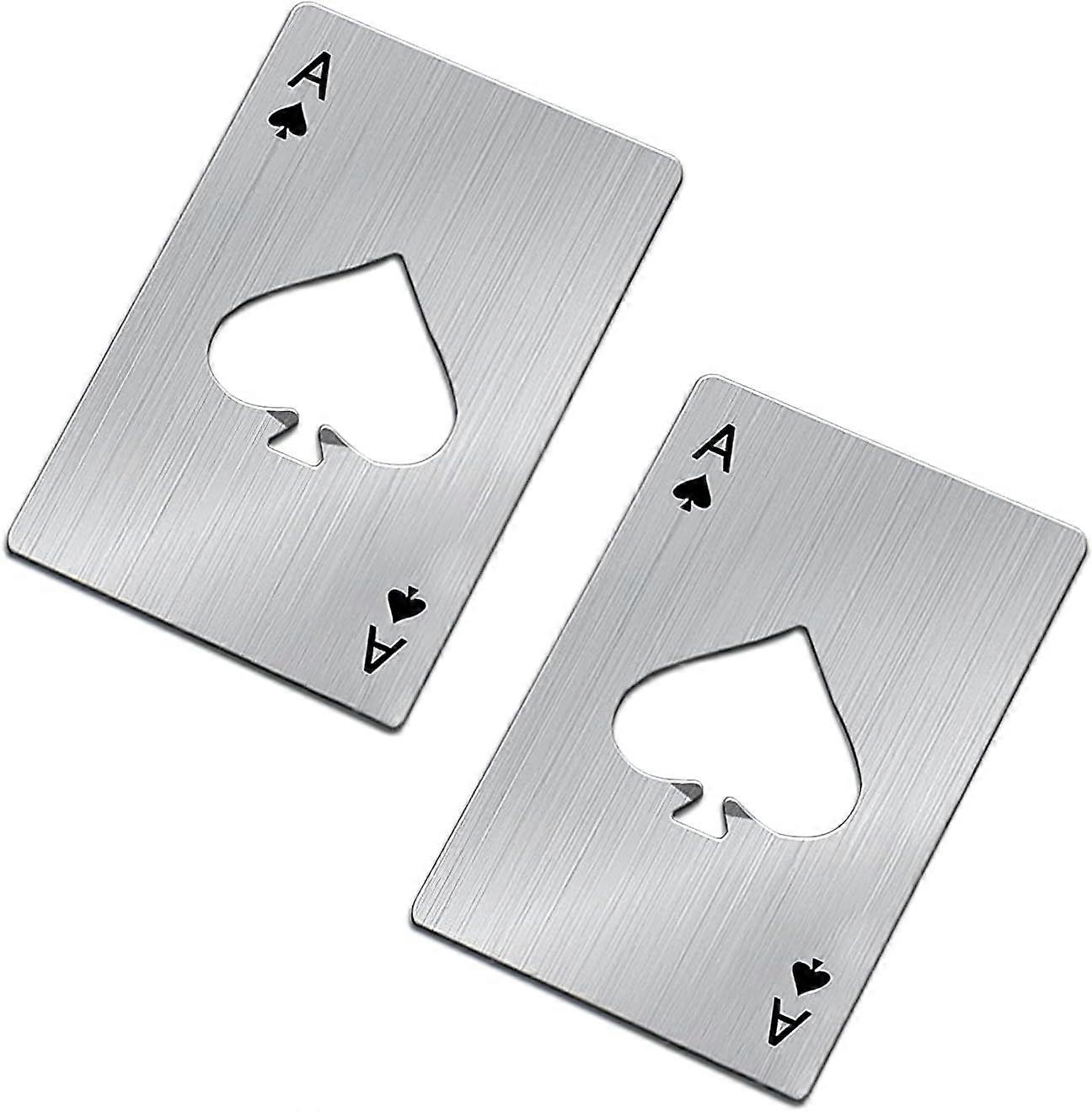 Ace Of Spades Bottle Opener Credit Card Size Pocker Cap Opener Portable Stainless Steel Can Opener (2 Pack Black & Silver)