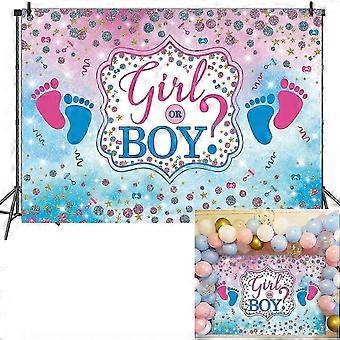 7x5FT صبي أو فتاة الجنس تكشف عن خلفية التصوير الفوتوغرافي الأزرق الوردي آثار الأقدام بريق النقاط الخلفية ماذا سيكون الطفل لافتة استحمام الطفل حزب Decoratio