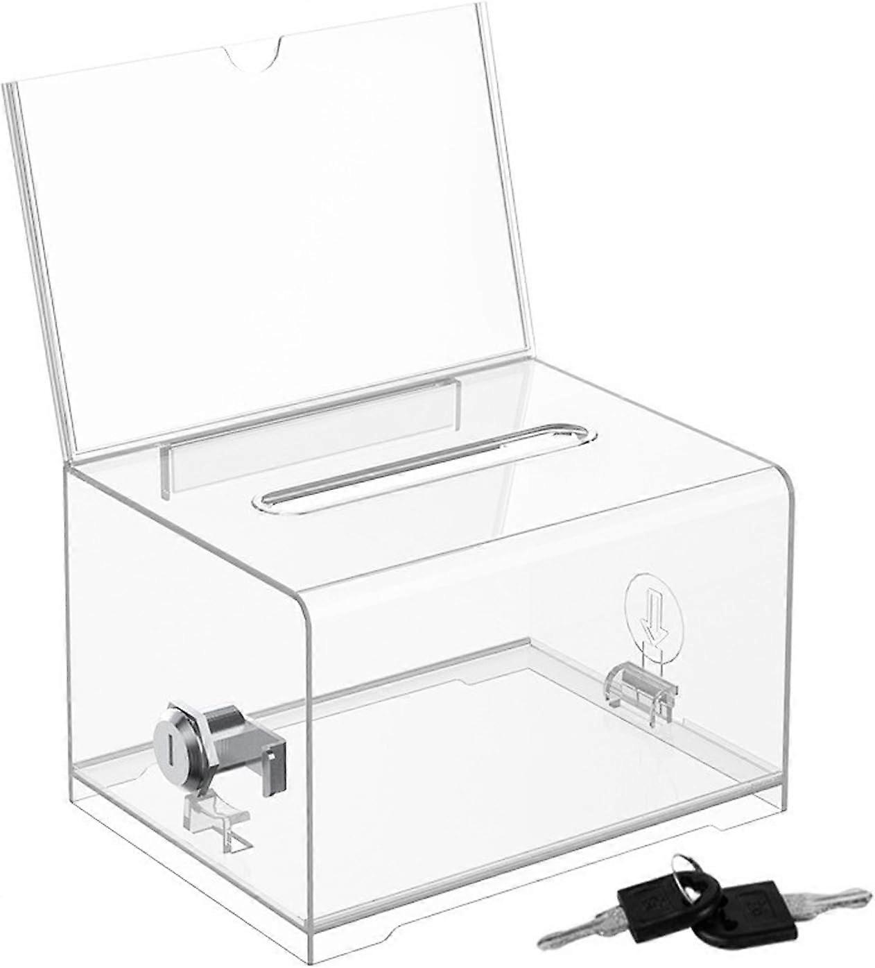 Acrylic Donation Box, Transparent Ballot Box with Key Lock, Lockable Donation Box, with Sticker, for Sweepstakes, Business Cards, Votes.