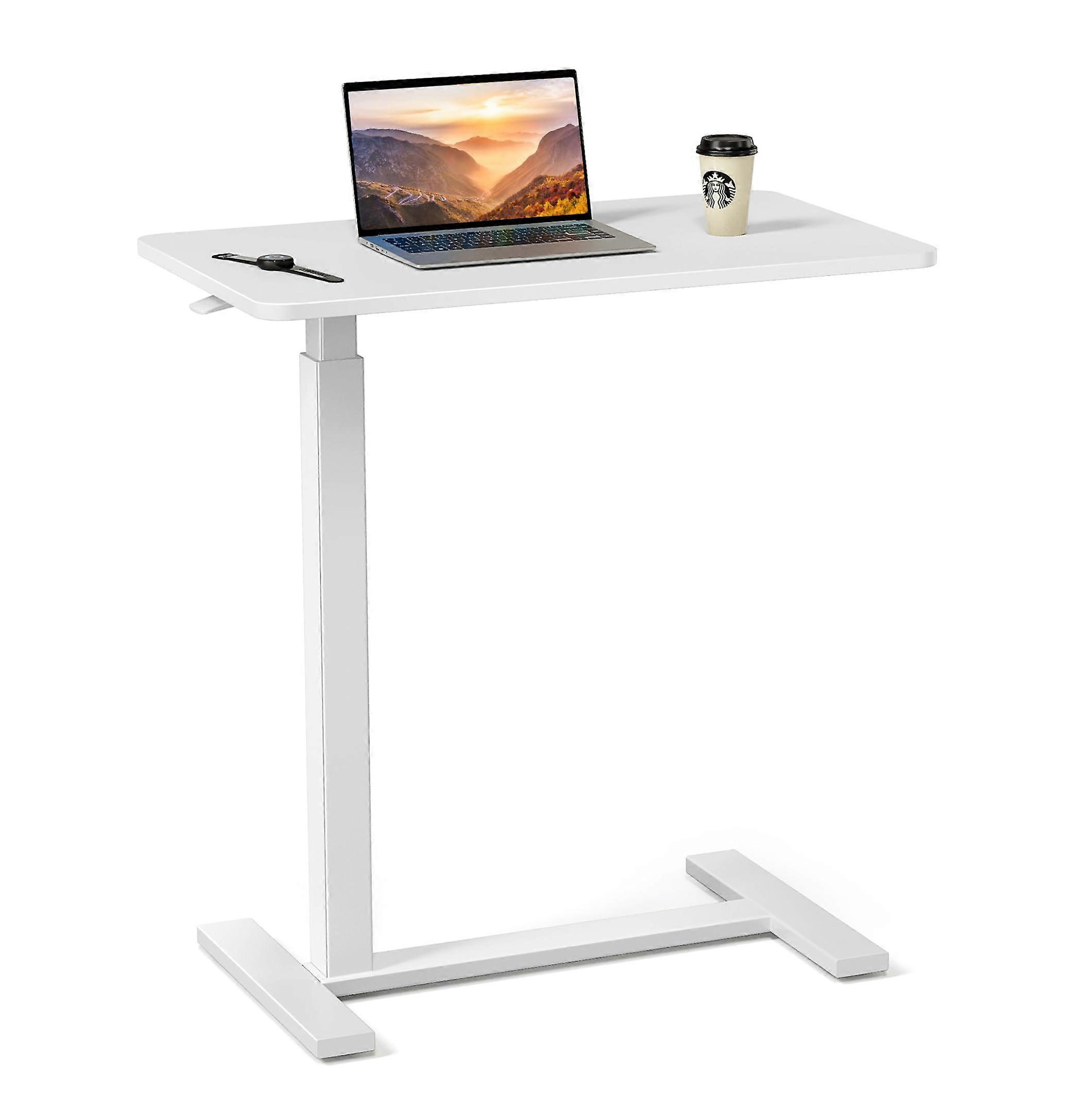 Adjustable Bed Table with Wheels, Height Adjustable Overbed Laptop Desk with Tiltable and Locking Casters