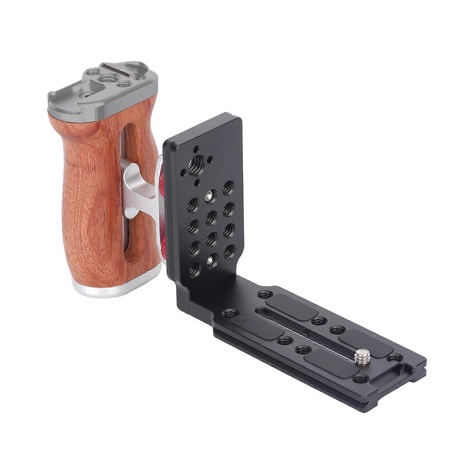 Features: Upgrades your DSLR rigging flexibility with this L shaped quick release plate featuring adjustable 1/4" & 3/8" mounting points (12-24mm spacing), double lock screws, and cold shoe slots for monitors, mics, and accessories for most camera cages. from aluminum alloy and ergonomic wood grip, this side handle integrates base, magnetic hexes wrench storage, and triple bolt reinforcement systems for rock solid stability during handheld operations. for professional photographers and videographers seeking modulars control, it supports content creators filming documentaries, live streams, or studio requiring multi device setups. Perfect for outdoor shoots where quick equipment swaps matter – securely mount LED panels on the cage while using the handle's textured grip for fatiguefree shoots in environments. The innovative sliding rails mechanism with pre drilled positioning holes ensures toolless adjustments, making this L bracket essential cage accessory for dynamic camera configurations. Specifications: Materials: Aluminum alloy+Wood Size:as picture show Color: Silver, (optional) Package Includes: 1Set Quick Release Plate note: Please allow 0-1cm error due to manual measurement. make sure you not mind before bid. Due to the differences between different monitors, the Pictures may not reflect the actual of the item.