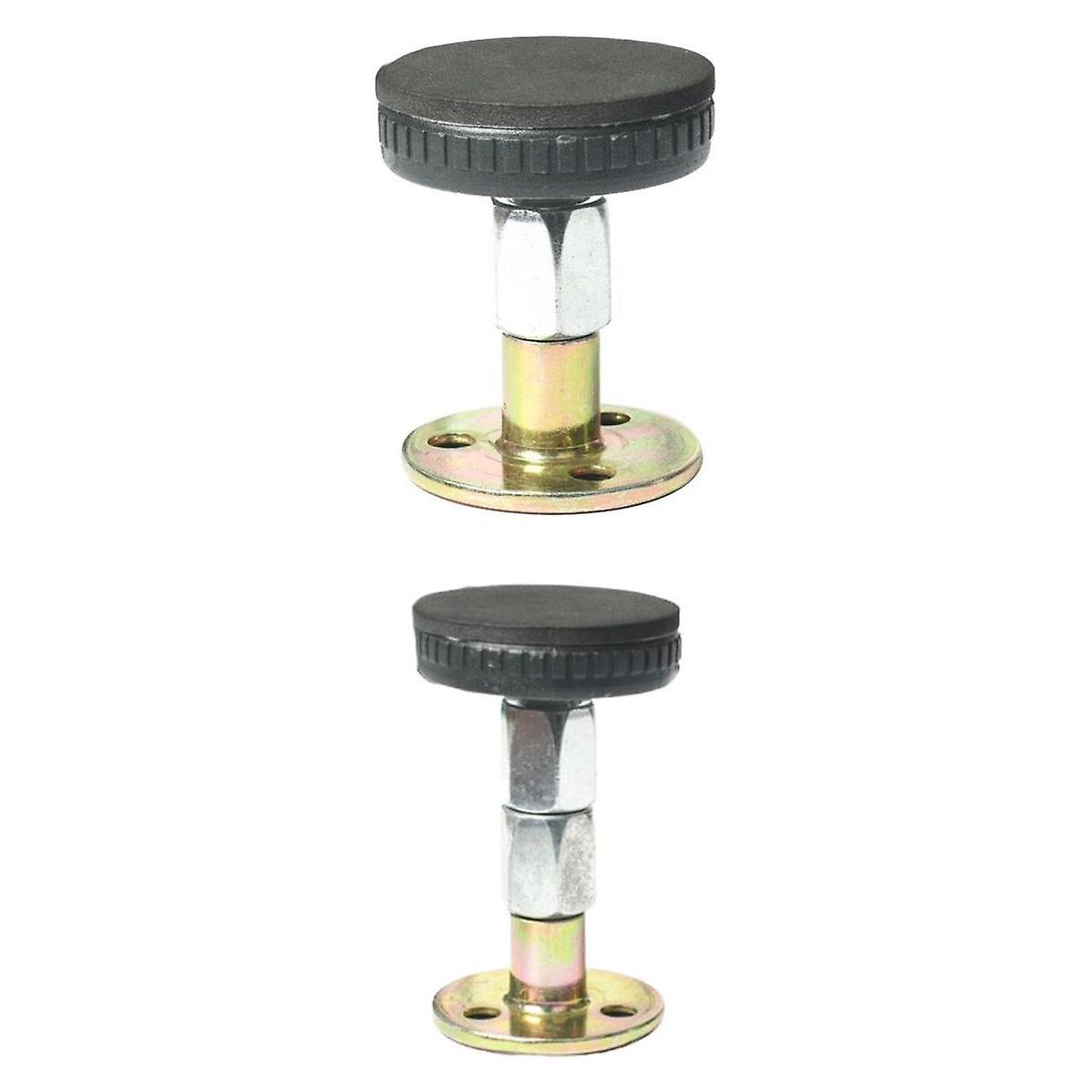 Description : This adjustable threaded anti - shake bed frame tool can be used for the center of gravity is unstable or easy to shake objects , such as objects against the wall like beds , cabinets , chairs and sofas . Fixed bed , prevent bed movements from squeaking and improve your sleep . Felt can effectively reduce noise and protect the wall from damage and prevent bedrock from shaking . Easy to Install , the threaded glides screw into place and can transform your bed frame in minutes , make your bed more stable . Made of alloy , firm and reliable and can withstand heavy pressure . 4 different height ranges for your needs . Specification : Material : Alloy Size : approx . Bottom Diameter : 37mm / 1 . 45inch Top Diameter : 44mm / 1 . 73inch Height : 47 - 64mm / 1 . 85 - 2 . 52inch 64 - / 2 . 52 - 3 . 42inch Color : Black Package Includes : 2 Pieces Adjustable Threaded Bed Frame Note : 1 . Please allow 1 - 3mm error due to manual measurement , Please make sure you do not mind before you bid . 2 . The colors may be a little difference for the different monitors displays , please understand .