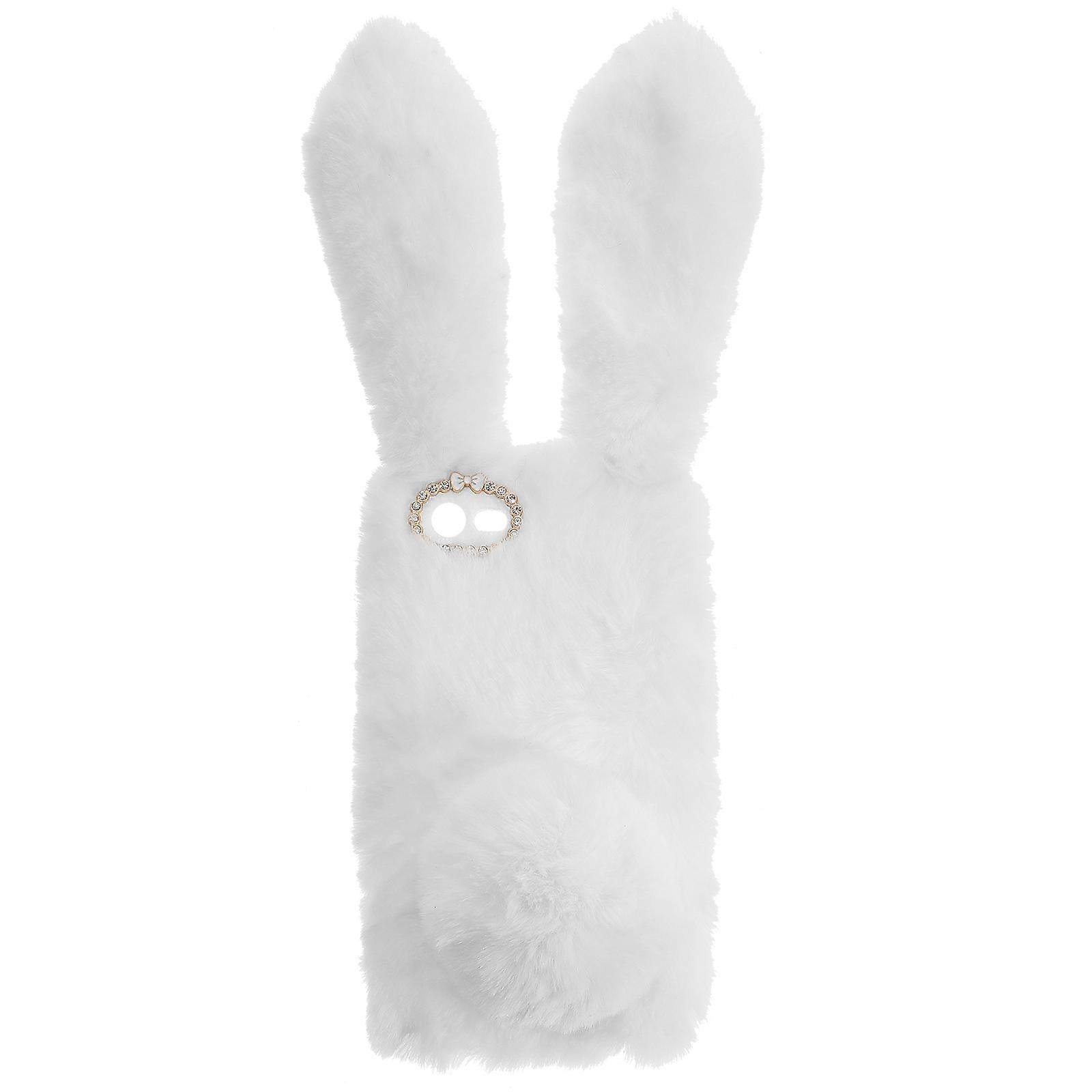 Adorable Rabbit Plush Phone Case for Girls and Women in White Designed for Daily Use with Rhinestone Frame and Shockproof Function 1Pack