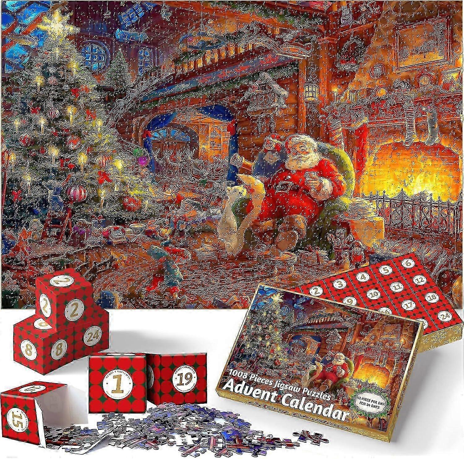 Advent Calendar 24 Days, Cardboard Jigsaw Puzzles,Beautiful Christmas Countdown Calendars Puzzle CEvery Piece is Unique, Softclick Technology Means Pieces Fit Together Perfectly Highlights The advent calendar puzzle contains 24 medallions, available from December 1st to December 24th, open a locket every day to complete part of the puzzle and enjoy the countdown until Christmas comes. Reusable material: Take your puzzle skills to the next level with our advent calendar puzzles. Each made from recycled cardboard, complete with tight stitching, a matte finish and long-lasting reusability. This unique advent calendar jigsaw puzzle offers moderate difficulty that adds to the fun and enthusiasm of the holidays. It contains 1008 pieces and is an interesting toy suitable for adults and children to play together and increase the holiday spirit. Wonderful decorations: Create beautiful decorations with our advent calendar puzzles. Once done, frame and hang