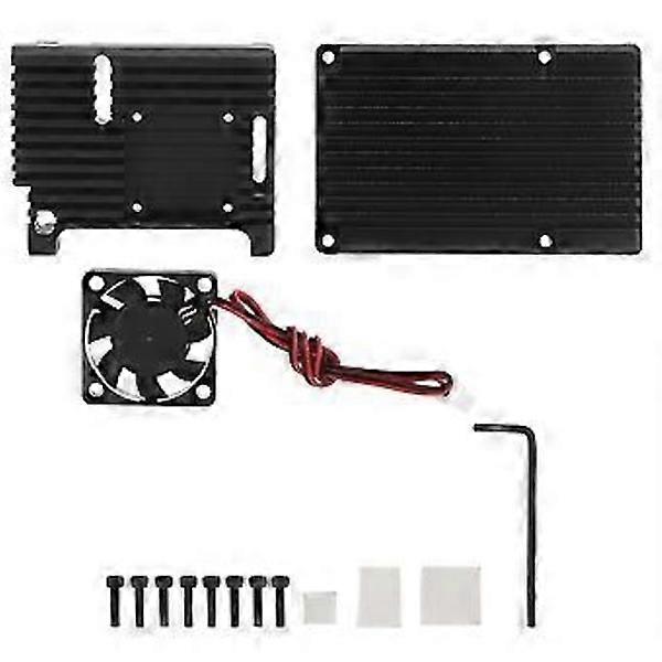 Aluminum alloy heat sink, black, with fan, suitable for Raspberry Pi 4 Model B