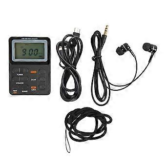 Features 1.DSP DIGITAL SIGNAL PROCESSING CHIP: Mini radio uses an excellent DSP digital signal processing chip for more stable reception and better reception in weaker signal locations. Frequency range is FM 87?108MHz, AM 520?1710KHz. 2.STEREO SOUND: AM FM pocket radio has a built in compact but clear sound quality speaker with stereo headphone sound (headphones included), so you can enjoy stereo sound anytime and anywhere. 3.RECHARGEABLE BATTERY: Pocket radio has a built in 500mAh rechargeable battery that can operate continuously for up to 10h on a full charge. The lock button is designed to prevent accidental operation when the radio is in your pocket. 4.VOLUME CONTROL: AM FM portable radio comes with 3.5mm plug stereo headphones for rich stereo sound. Volume control for accurate volume adjustment according to signal strength, meeting your various needs. 5.WIDE RANGE OF APPLICATIONS: Mini digital radio is great for walking, running, biking, gardening, traveling or other outdoor sports. Simply put on the headphones and enjoy your relaxation time. specificationItem Type: AM FM Portable Radio Size: Approx. 80x57x17mm / 3.1x2.2x0.7in Product Material: ABS Color: Black Battery: Lithium Ion Battery 402030 (Built In) Capacity: 500 mAh Frequency Range: FM: 87-108MHz, AM: 520-1710KHz Interface: Micro USB, 3.5mm/0.1in Headphone Jack, Small Memory Card (Maximum 32GB) Headphones: Stereo Headphones Features: FM Stereo, Alarm Clock, Time, Sleep, Scan Storage Station PackageList1 x AMFMPortableRadio 1 x Earphone 1 x Charging Cable 1 x Hand Strap 1 x Instruction Book Note1. Please allow some error due to manual measurement. 2. Insert the headphones firmly into the deepest part of the radio's headphone jack when in use.