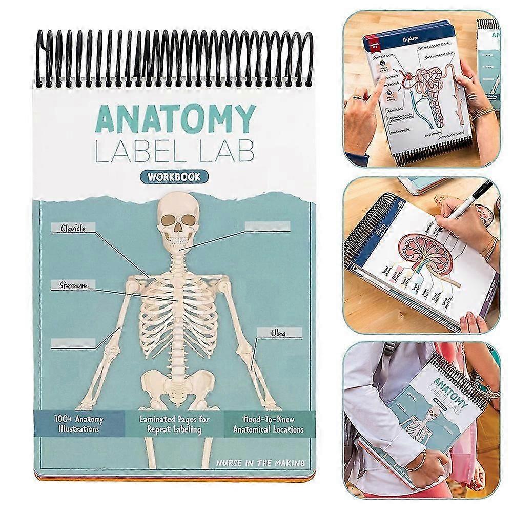Features: Hands-On Learning: Features over 100 reusable laminated pages with clear illustrations for repeated labeling. Coverage: Includes 10 different body systems, organs, and structures within the human body like muscles, bones, cardiovascular, neuro, respiratory, and much more. Sturdy: The laminated pages are easy to erase with the included dry erase markers, allowing for endless labeling. Focused Illustrations: Each illustration includes only essential need-to-know information and labels for efficient learning. Portable: The compact workbook format makes it convenient for studying anatomy on-the-go. Notice: 1.Actual color may be slightly different from the image due to different light effect 2.Please allow 1-3cm deviation due to manual measurement Material: Paper Size: 28x18cm Accessories: 4 Dry Erase Markers Package List: 1 Set Anatomys Label-Lab Workbooks