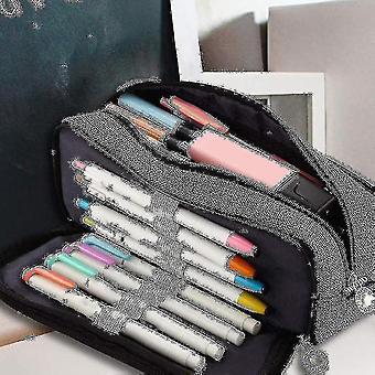 Angoo Pencil Case Big Capacity 3 Compartments Canvas Pencil Pouch For Girls School Students ,b