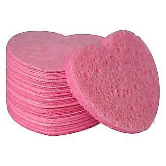 50pcs Heart Shaped Facial Cleansing Sponges, Reusable Cellulose Exfoliating Pads for Sensitive Skin