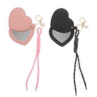 2 kpl kompakti peiliavaimenperä: Sydämenmuotoinen minipeili PU-suojuksella laukun viimeistelyyn - Ranneavaimenperä naisille ja tytöille Matkatarvikkeet