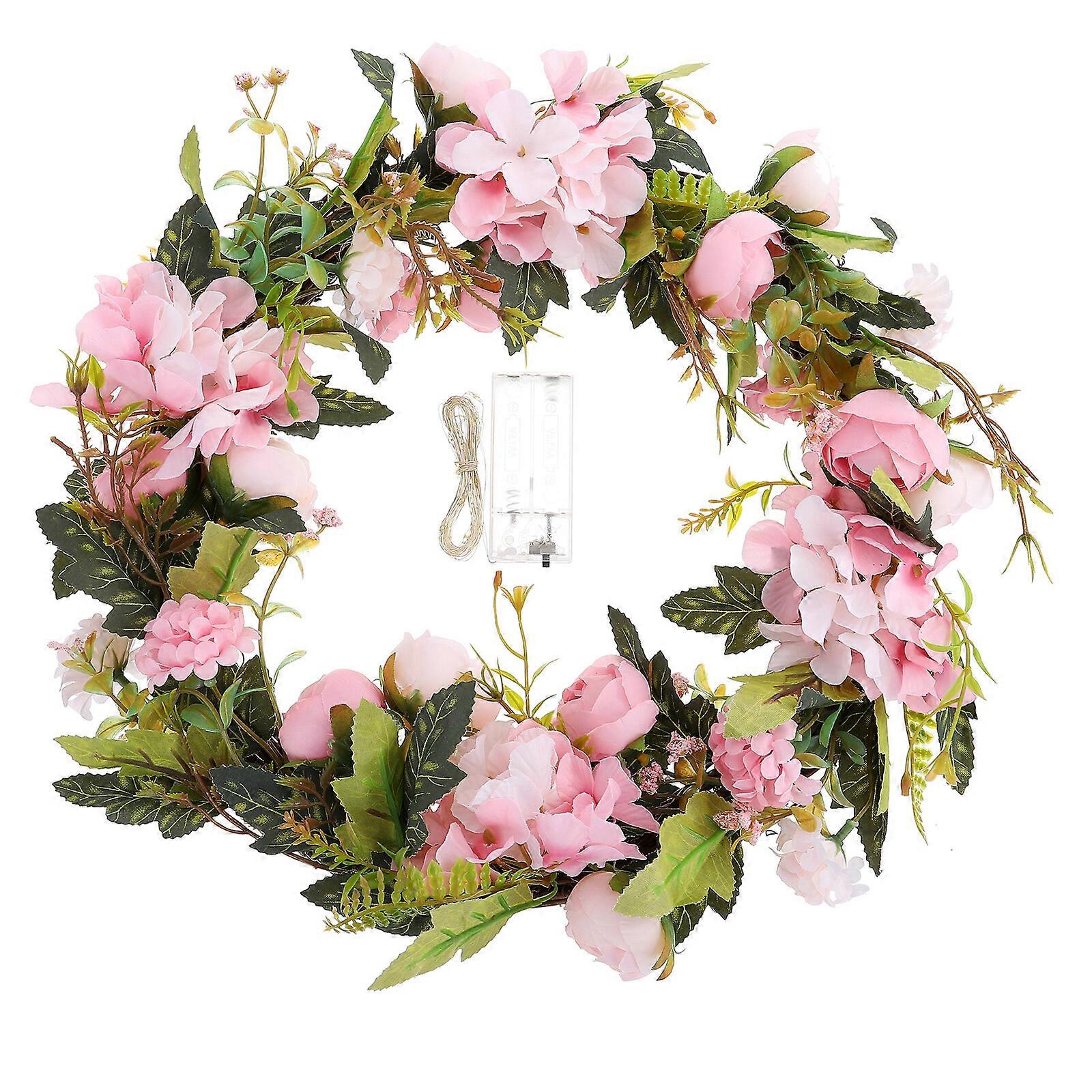 Artificial Flower Wreath Front Door Flower Wreath Hanging Summer Wreath with String Lights