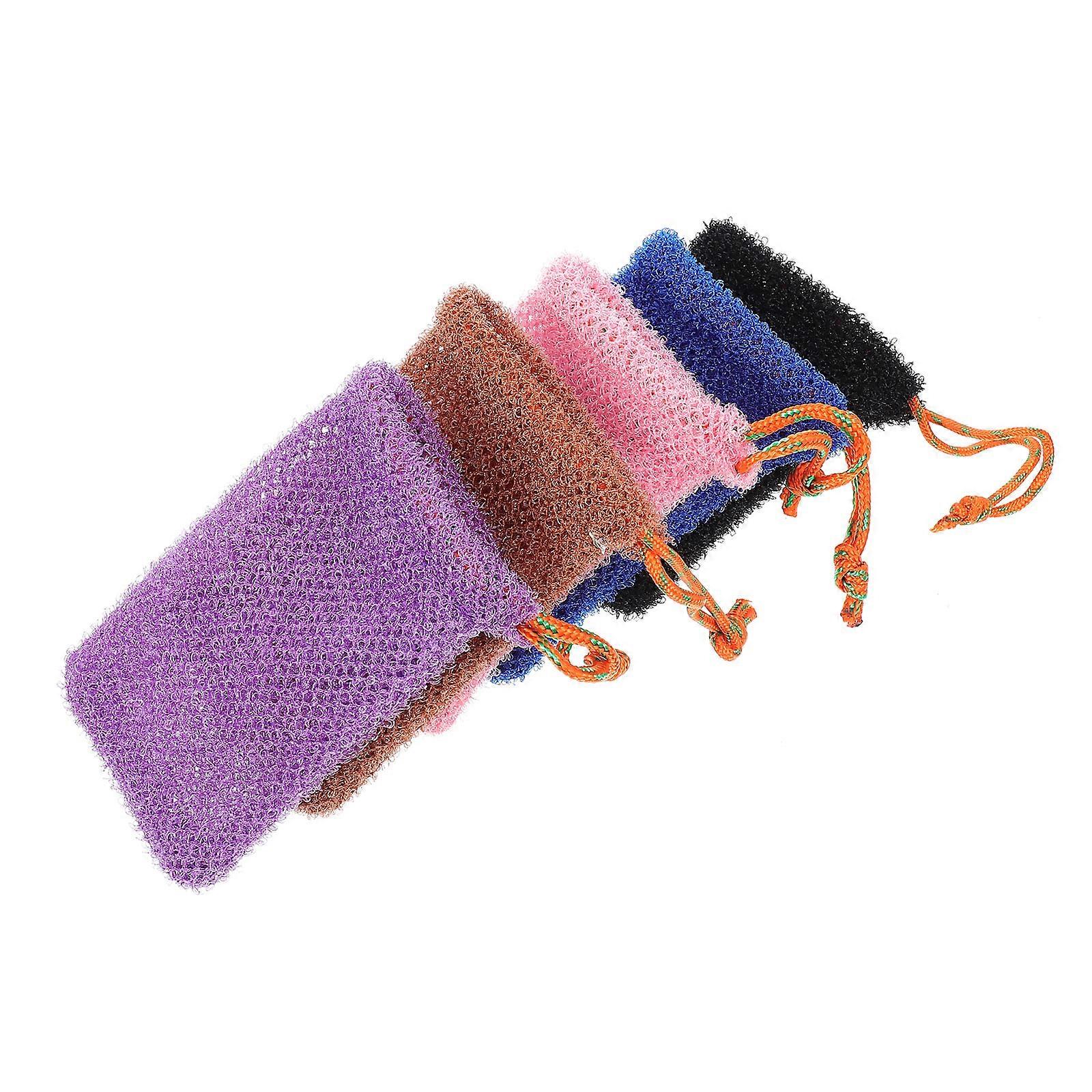 Assorted Color Soap Bag for Bath Use with Drawstring 5Pcs Set