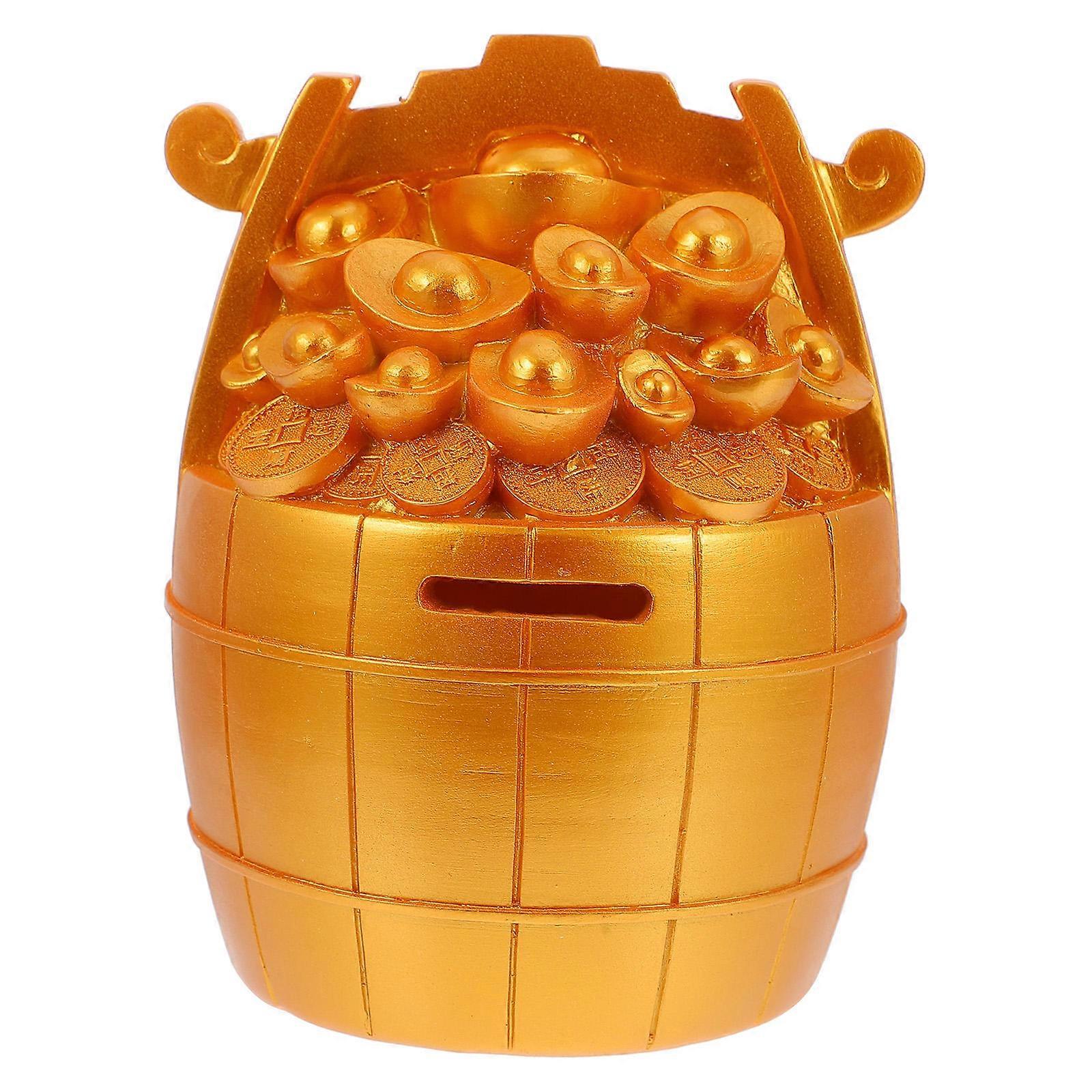Auspicious Saving Pot 2Pcs Bucket Shape Piggy Bank For Home Decoration Golden Color With Money Storage Function