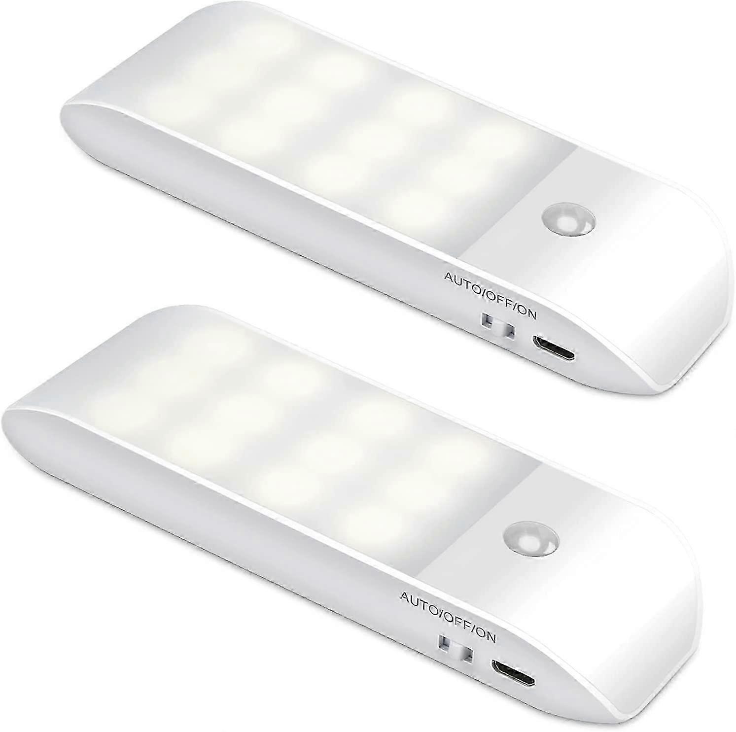 Auto led night light [2 pieces], 12 led usb rechargeable, with motion sensor magnetic strip, 3 mod p