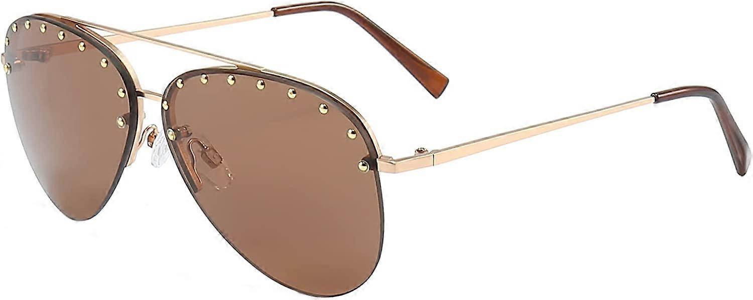 Oversized Rimless Studded Aviator Sunglasses: Fashion Designer Rivet Big Square Bling Sparkly Diamond Party Disco Glasses