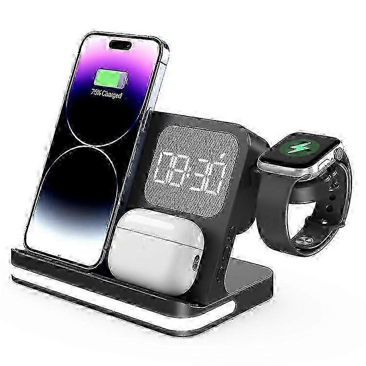 B-22 3 in 1 Wireless Charger 15W Charging Station Compatible For iPhone / Apple Watch, AirPods with Alarm Clock