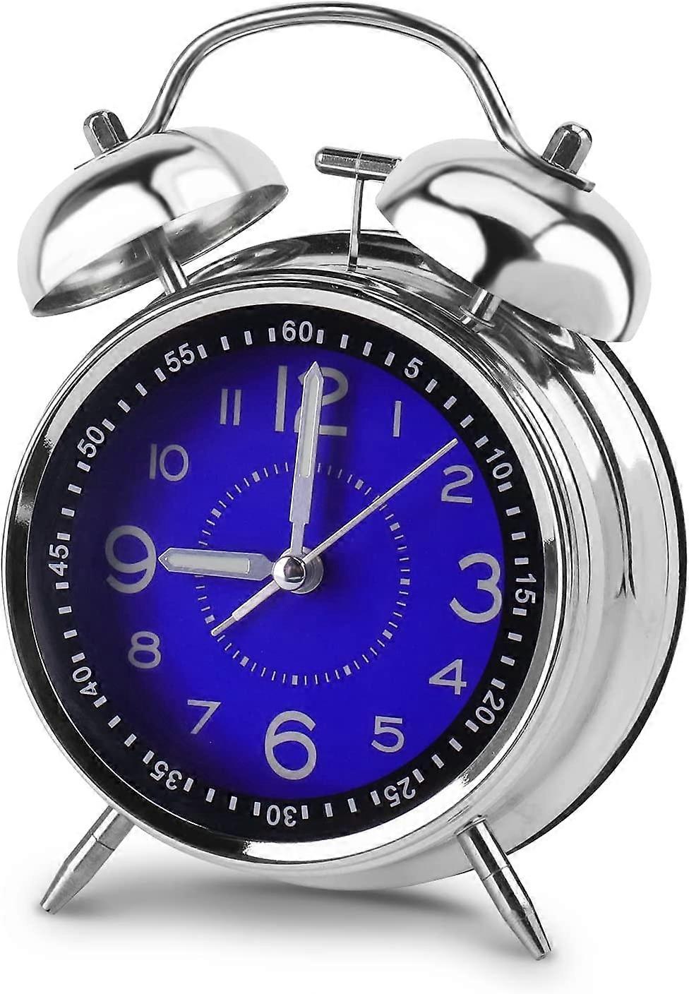 Baicccf Loud Alarm Clock, Twin Bell Alarm Clock with Backlight, Battery Operated Bedroom Alarm Clock for Heavy Sleepers (Blue)