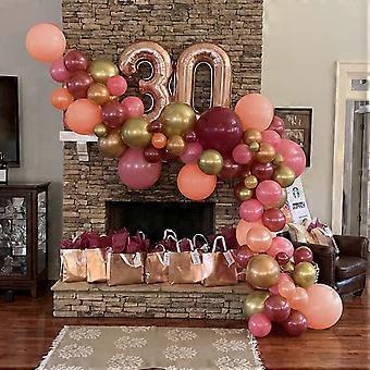 Viininpunainen ilmapallokaarisetti, retropinkki ilmapalloköynnössetti, ruusukultainen viininpunainen