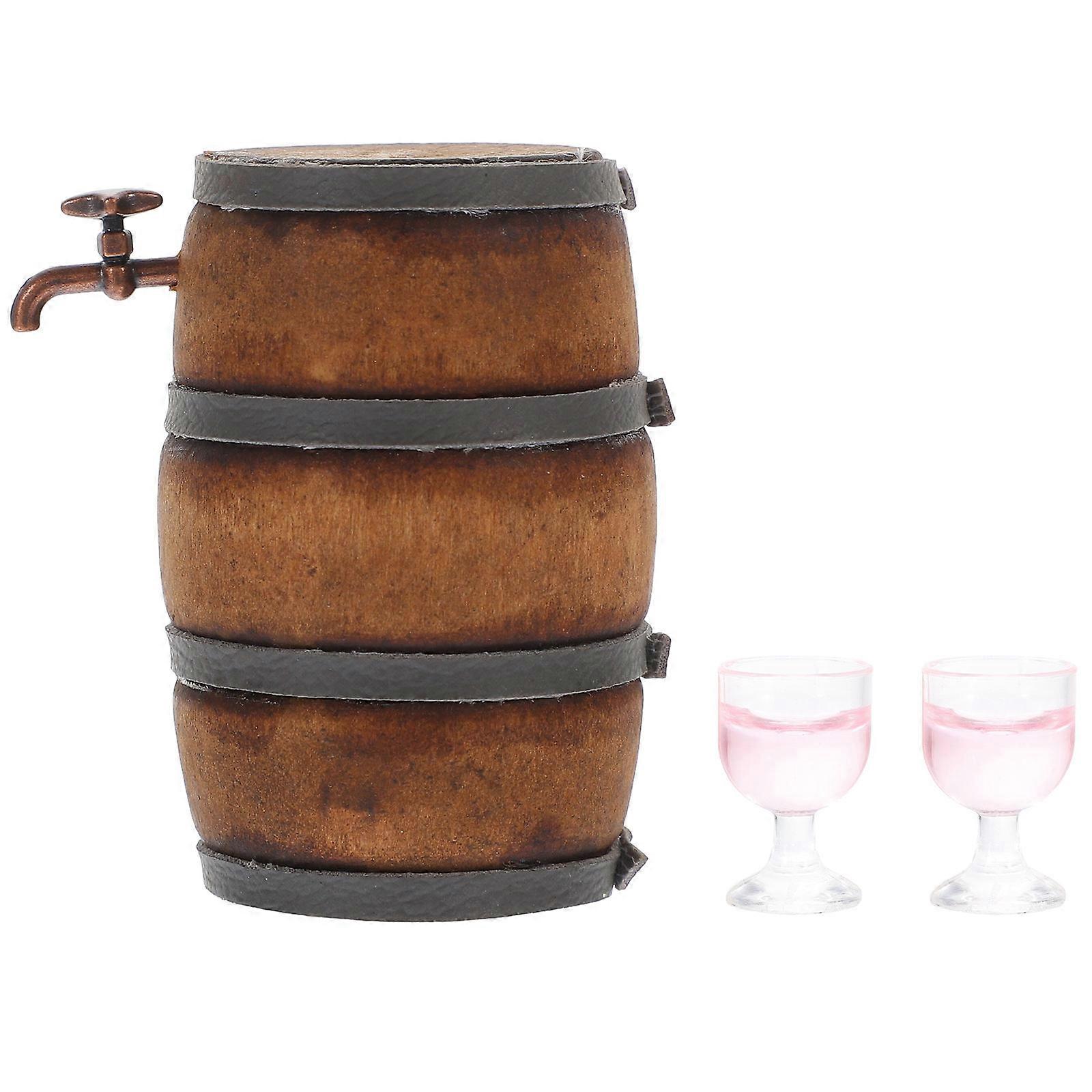 Barrel Model Miniature Furniture Retro Style Miniature Scene Creation Assorted Color Wood 1Set