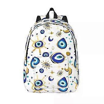 a1193 Reppu Välimeren sininen ja kulta Evil Eye Canvas Reppu Naiset Miehet Rento kouluun Hamsa Nazar Amuletti Boho Laukut gsE1193