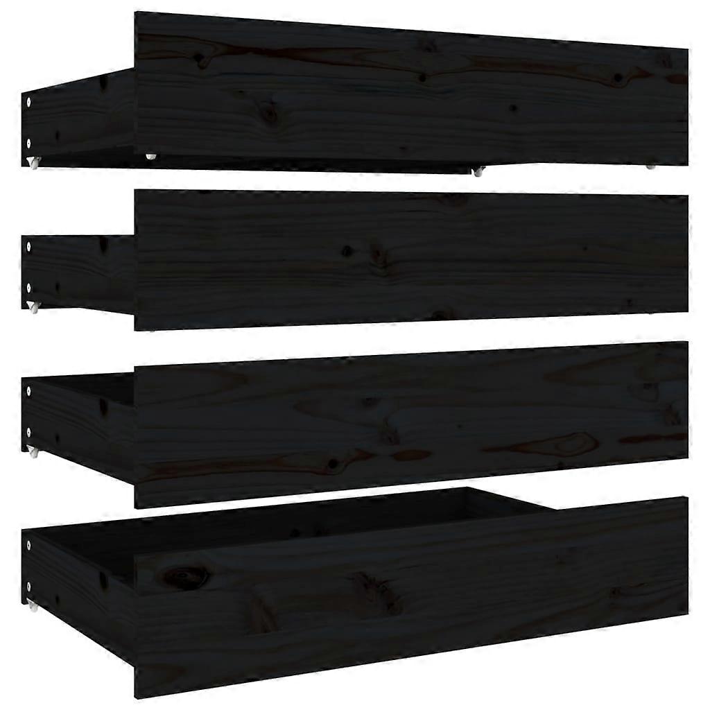 Bed Drawers 4 Pcs Black Solid Wood Pine Single Bed Frames