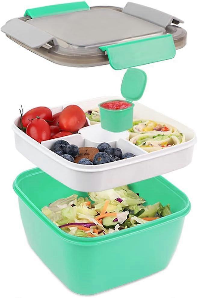 Bento Box 1500ML, Lunchbox Salad Lunch Container to Go with 3 Compartment Tray, Salad Bowl with Dressing Container, Built-in Reusable Spoon