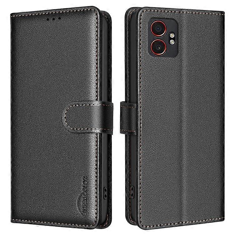 BINFEN COLOR BF32 For Samsung Galaxy XCover7 Pro Leather Case Wallet RFID Blocking Phone Cover Black
