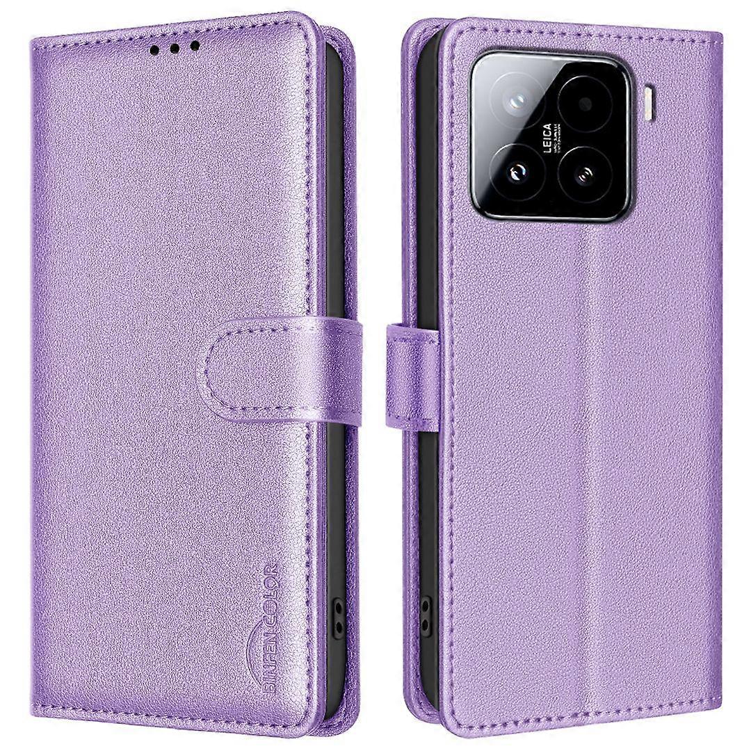 BINFEN COLOR BF32 For Xiaomi 15 Pro Leather Case Wallet RFID Blocking Phone Cover-Purple
