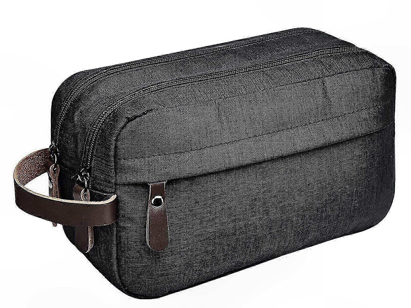 Black Toiletry Bag for Travel, Shaving, and Cosmetic Storage with Multiple Compartments