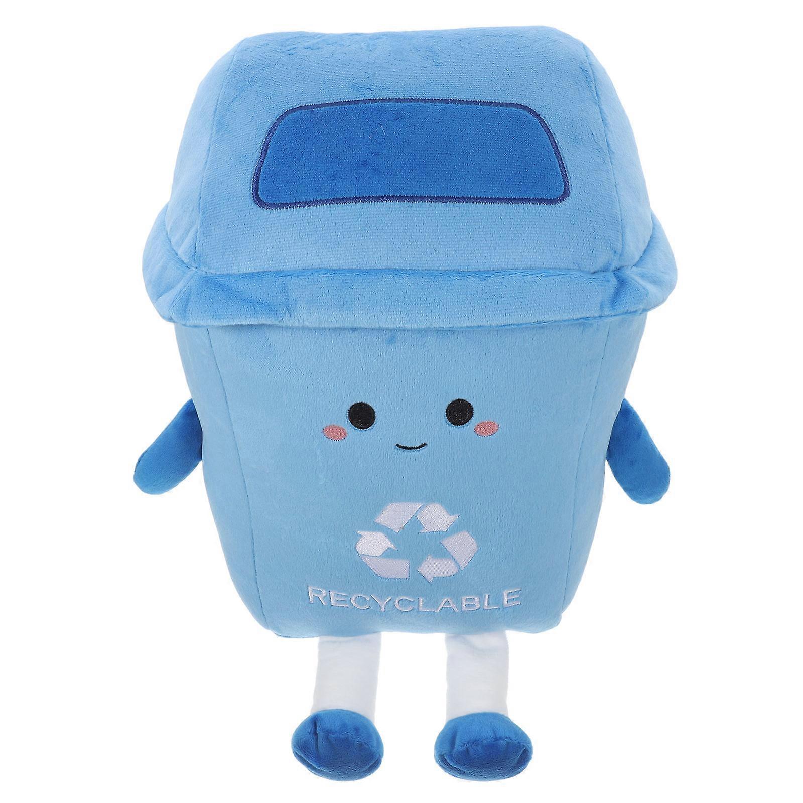 Blue Cartoon Trash Can Plush pillow for Kids Playing Soft Plush Fabric with Removable Cover 1 Piece