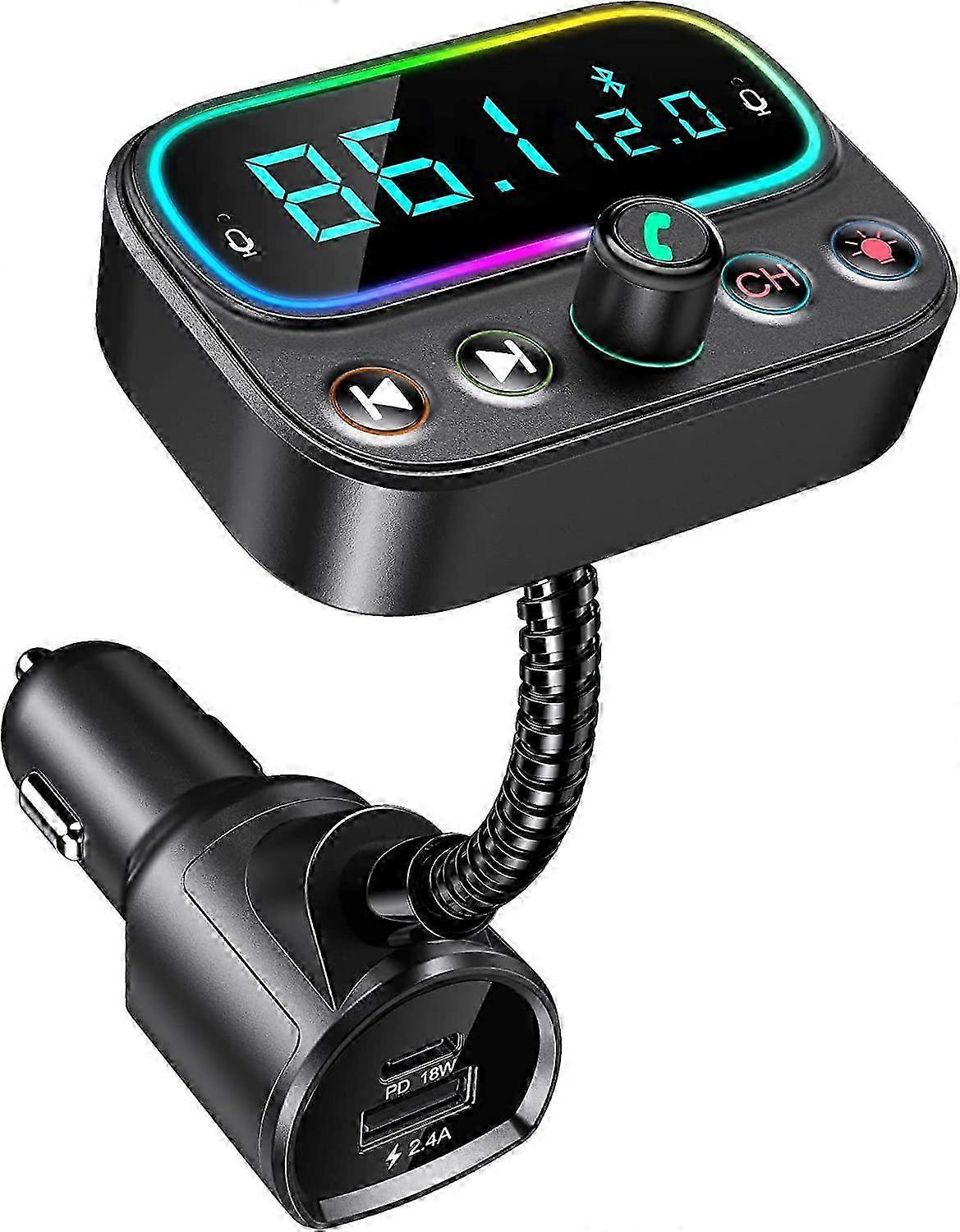 Bluetooth 5.0 FM Transmitter for Vehicles, Fast 18W USB C Car Charger, Bluetooth Radio Receiver with Multi-Color Backlight Options
