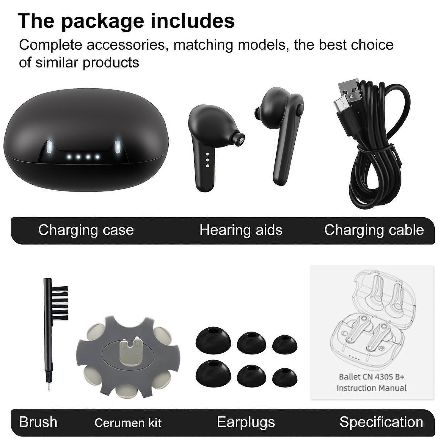 Origin:China Mainland Model Number:Ballet-CN430S B+ Brand Name:schbit Product name:Hearing-aid Function:Intelligent APP control,Medium power output, low distortion Colour:Black Peak OSPL90(dB SPL):1104dB OSPL90-HFA(dB SPL):1064dB Peak Gain(dB ):405dB HFA/FOG Gain(dB ):355dB Equivalent input noise(dB):32dB Frequency response range(Hz):F1200Hz F25000Hz Harmonic distortion:3%