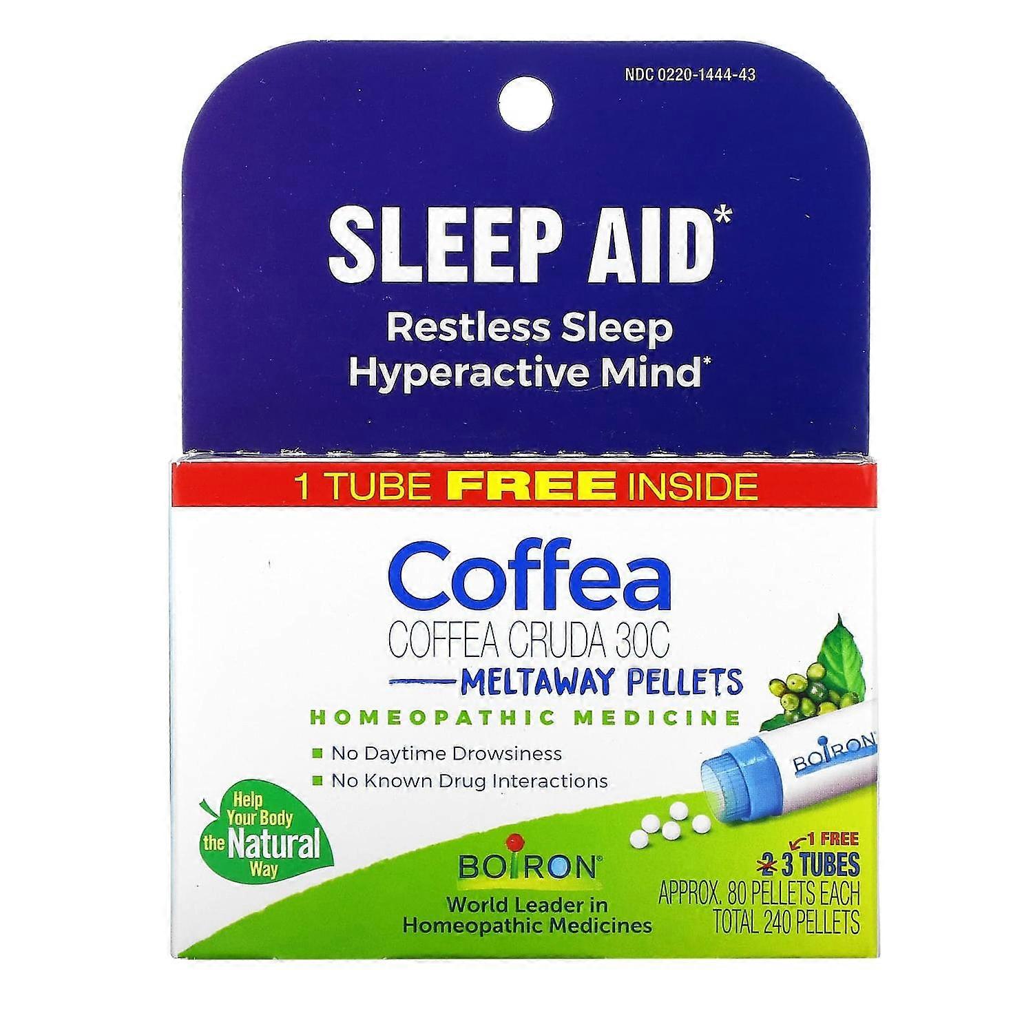 Boiron, Coffea, Sleep Aid, Meltaway Pellets, 30 C, 3 Tubes, 80 Pellets Each