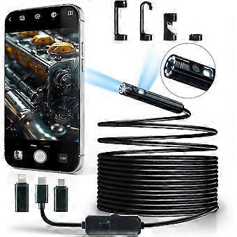 Endoskooppikamera IP67 vedenpitävä 8 LED-valolla 16,4 jalkaa puolijäykkä kaapeli 2 megapikselin HD-boreskooppi iPhone Android-puhelimille