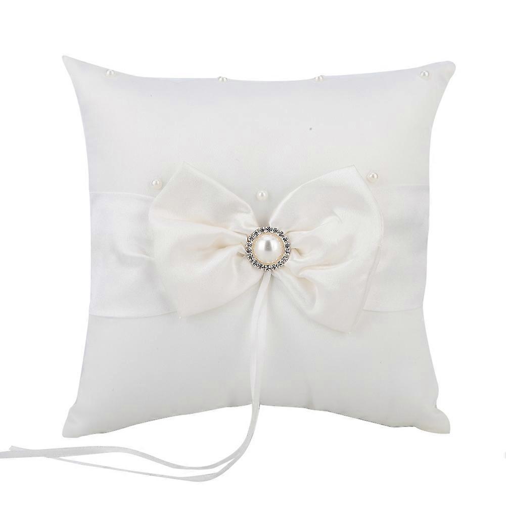 White Satin Bowknot Ring Bearer Pillow Holder Wedding Ring Pillow with Simulation Pearl 20*20cm