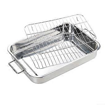 مقلاة تحميص ومجموعة رف من الفولاذ المقاوم للصدأ محمصة مستطيلة سهلة التنظيف مع رف للطهي الخبز 23.5x17.5x5cm / 9.3x6.9x2.0in