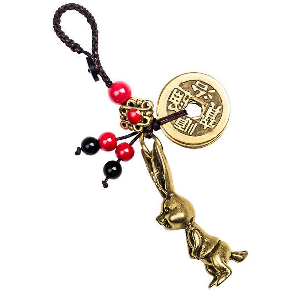 Brass Bag Charm Assorted Color Rabbit Chinese Coin Decorative Keyring for Backpack