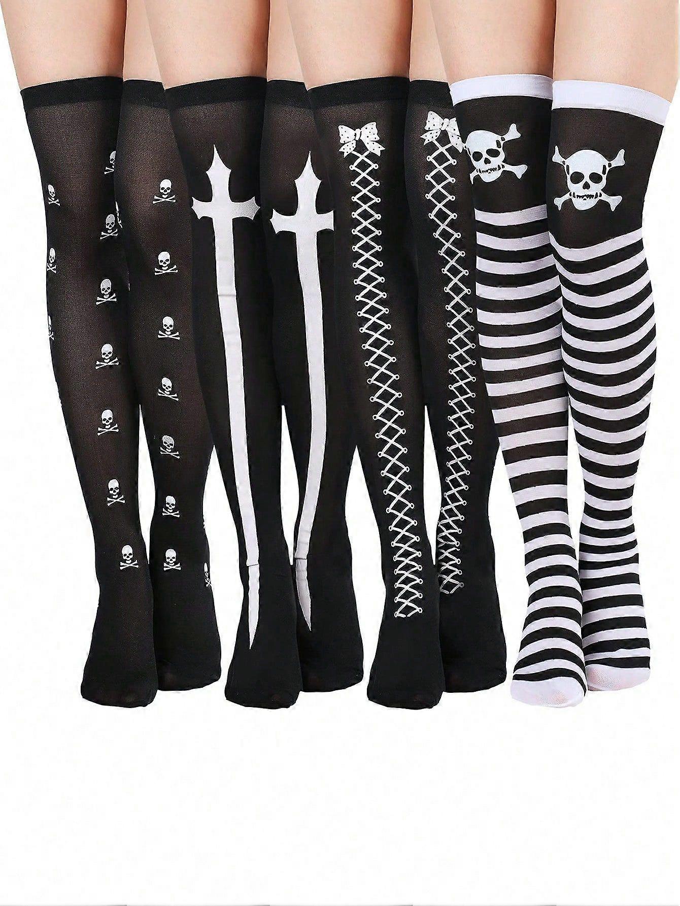 Briartw 4 Pairs Halloween Thigh High Long Stockings Over Knee Stockings Cosplay Festival Socks